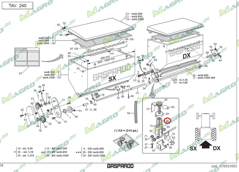 Крыльчатка дозатора удобрений в сборе с осью G20860106R запчасть для уборочной и заготовительной техники Gaspardo MT и SP