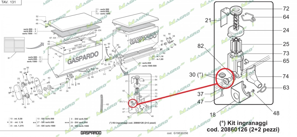 Шестерни конические (комплект 2+2) дозатора удобрений G20860126R, (РФ/тендер), аналог запчасть для уборочной и заготовительной техники Gaspardo MT и SP