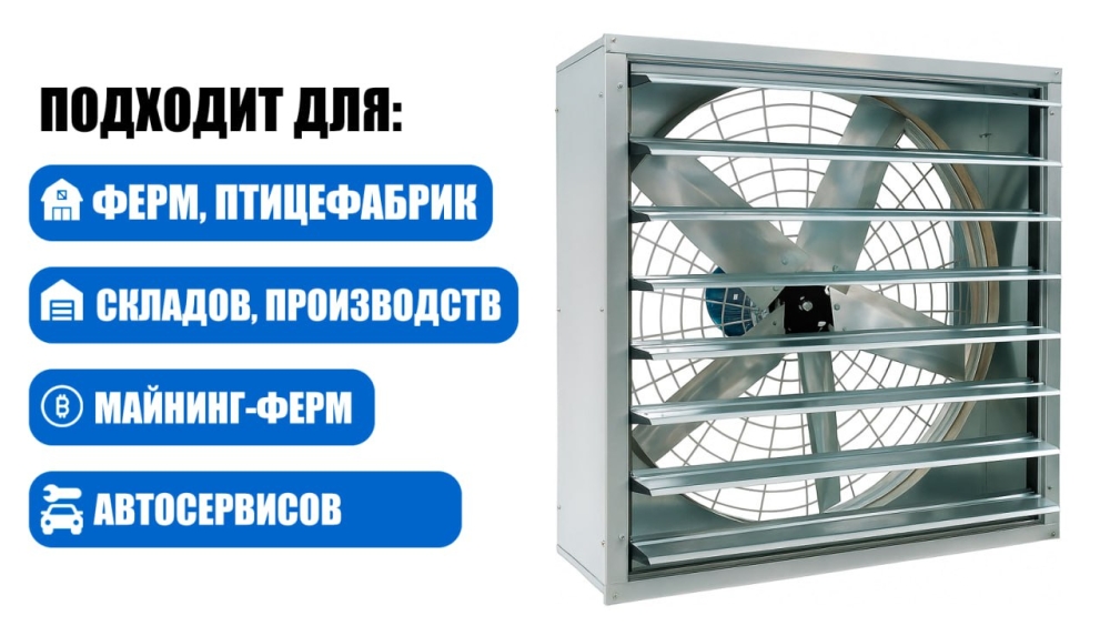 Вентилятор с жалюзи и без для майнинга, техцентра, дата-центров, цеха, теплиц, сельского хозяйства.